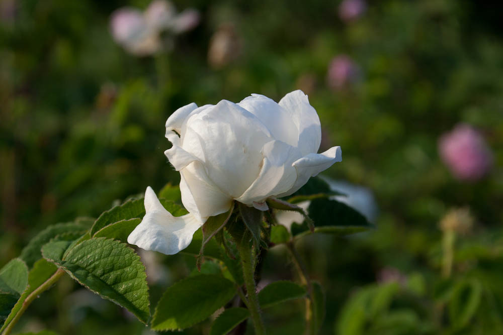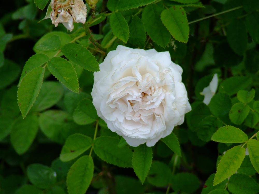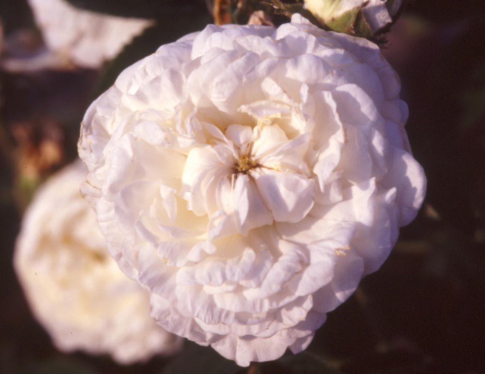Superba rosa che non cambia il suo portamento anche se non potata, con fiori doppi, bianco crema, piatti, spesso in quarti dopo essersi completamente aperti, perfettamente simmetrici. Anche questa e' una Damasco affine alle Alba, da cui la qualita' del suo profumo. Legno spinoso con foglie verde chiaro. Forma bellissimi gruppi nei giardini alberati. Il nome deriva dal patriota greco Markos Botzaris (1788 - 1823) che mori' durante la rivolta contro l'impero Ottomano. La sua morte fu celebrata in vari poemi e pieces teatrali dell'epoca.