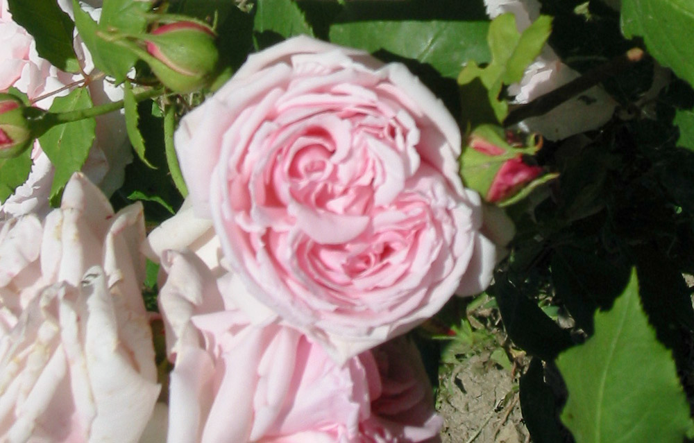 Fiori semidoppi, rosa tenero con il centro piu' intenso, a forma di coppa. Un buon profumo e una fioritura abbondante caratterizzano questa pianta. Portamento eretto e vigoroso. Adatta a coprire un pilastro.