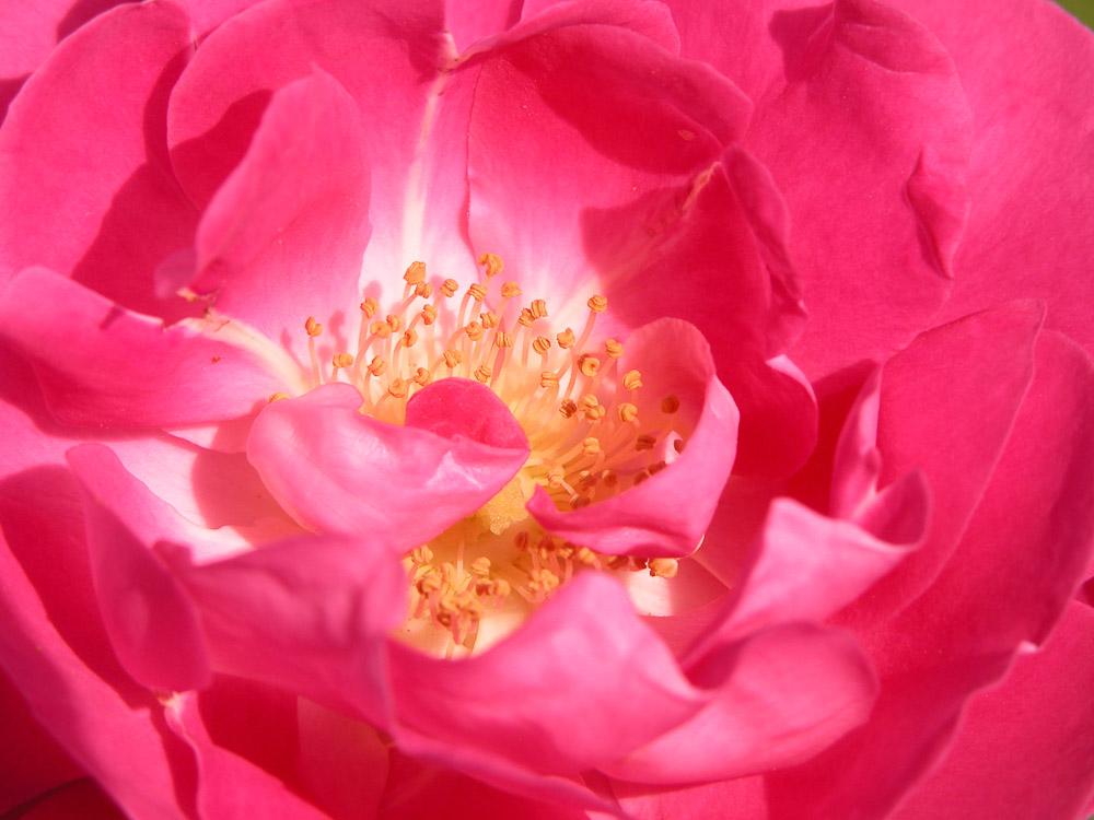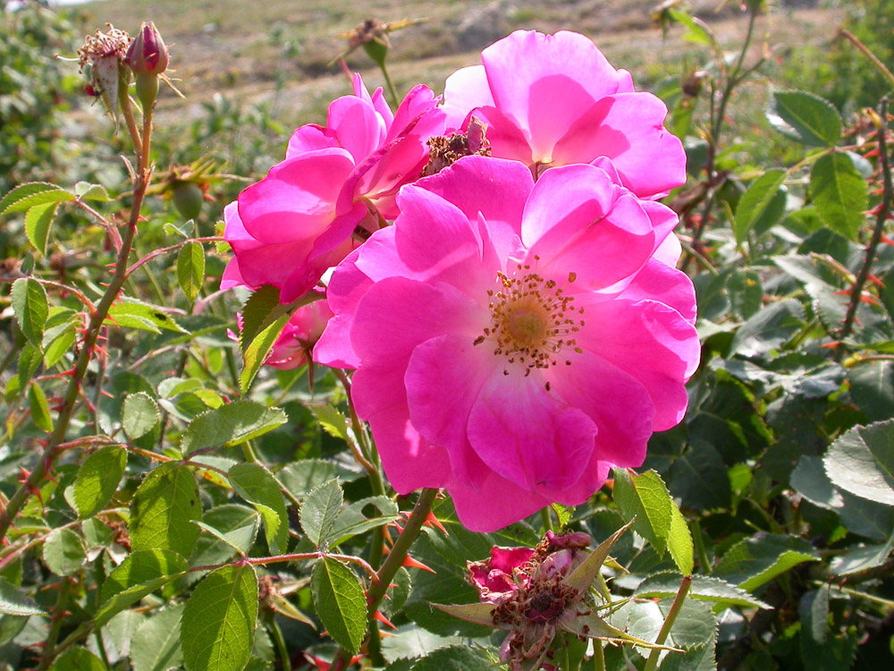 Molto robusta con fiori grandi, rosa ciliegia piu' chiari verso il centro, con una massa di stami prominente. Molto profumata. Adatta a formare gruppi nei parchi alberati e nei grandi giardini.