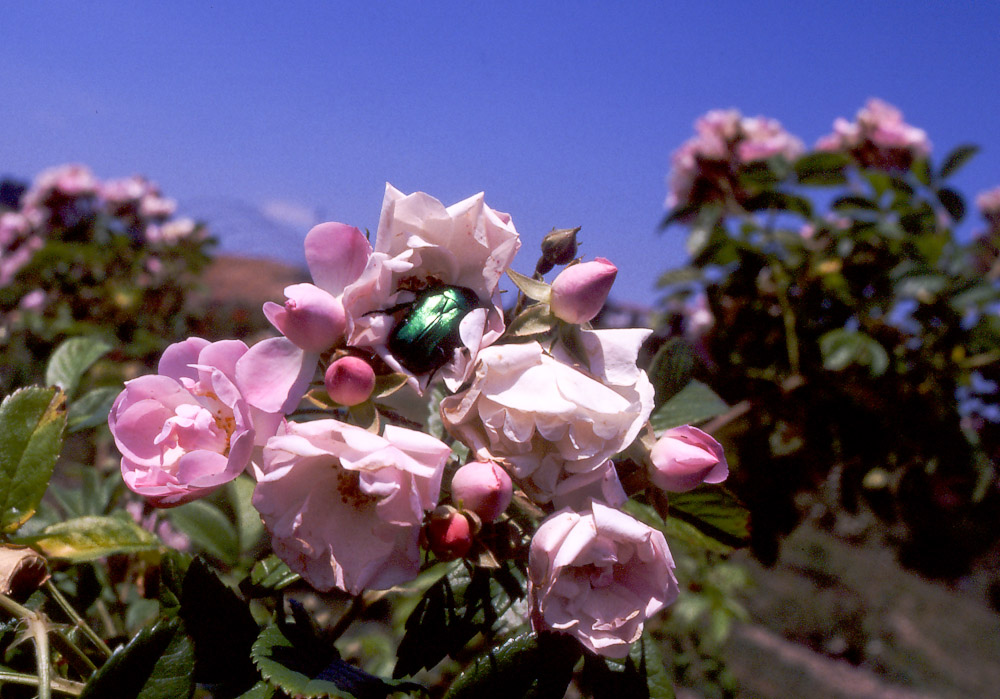 Grappoli ricadenti di fiori fragranti di colore rosa incarnato. Foglie abbondanti, verde brillante e rami con poche spine. Usata spesso nelle case in campagna per ricoprire pareti.