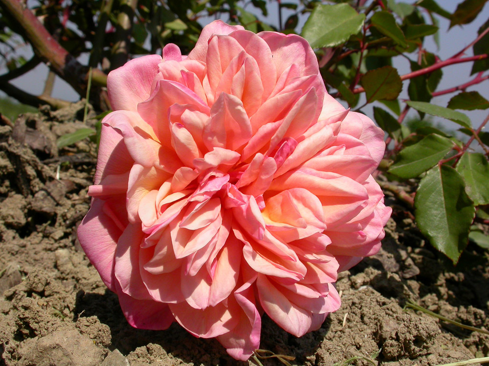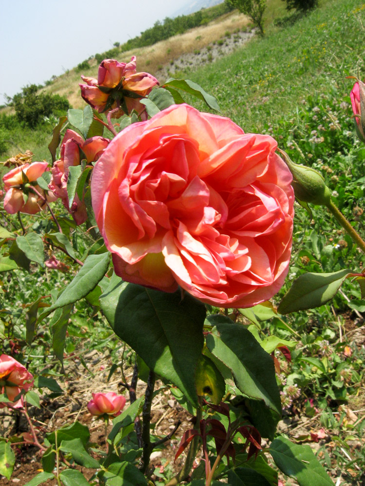 Una rosa Tea eccezionale, con fiori doppi, piatti e in quarti. Il colore e' una mescolanza di arancio, rosa e salmone su una base di giallo vivace. Sono prodotti con abbondanza e profumati. Ama i posti caldi e assolati. Adatta a essere coltivata nei vasi.