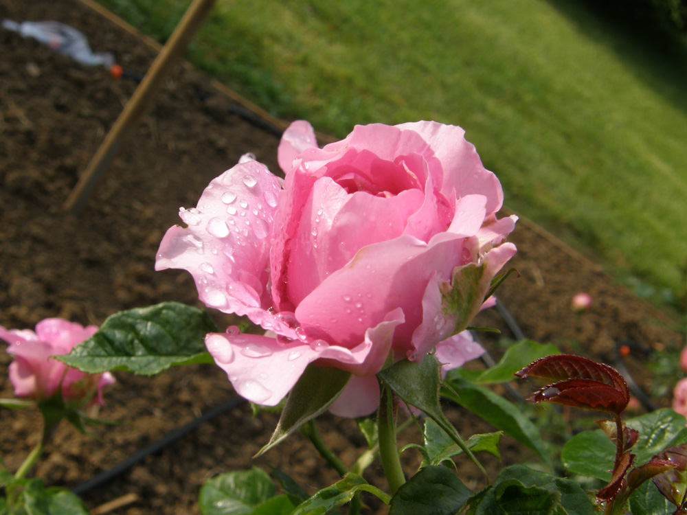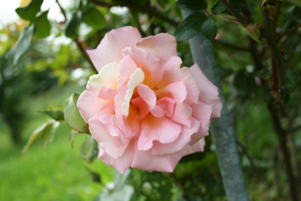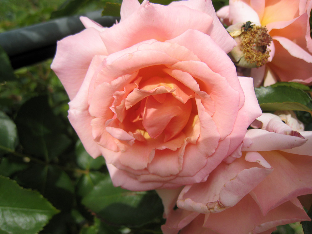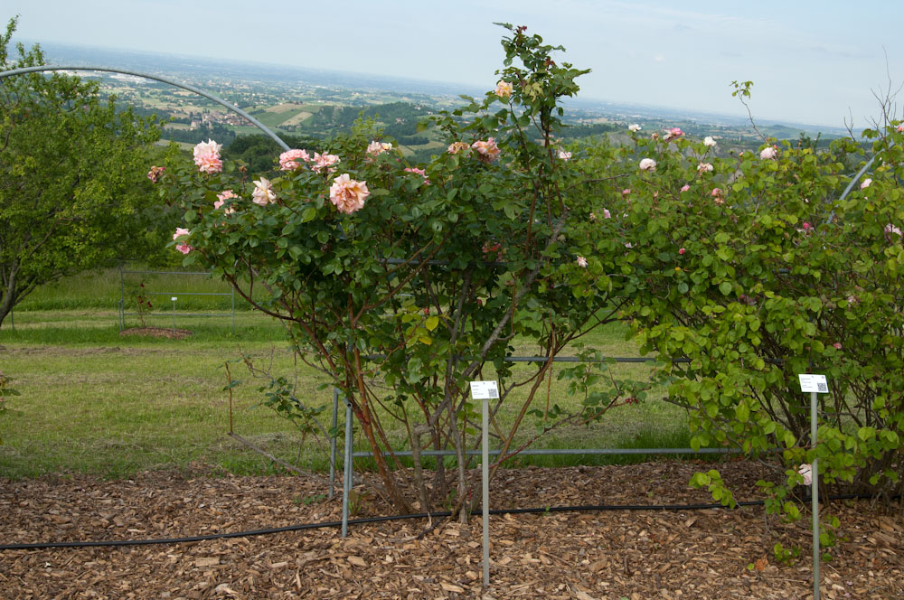 Albicocca e rame con lumeggiature gialle i colori dei fiori di questa rosa profumata. Piccola rampicante o grande arbusto da coltivare isolato in un prato.