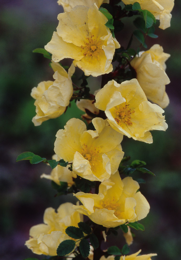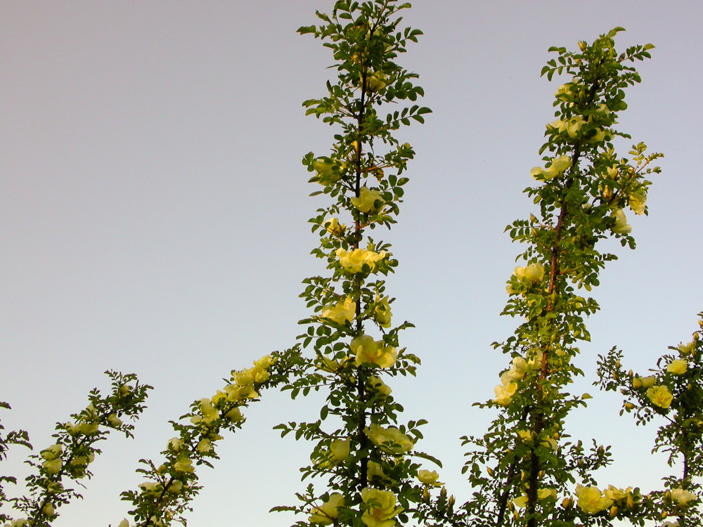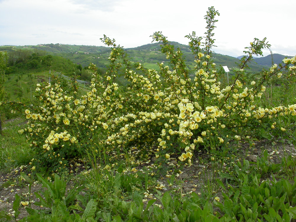 Arbusto spinoso, con piccole foglie. I fiori sono gialli, semplici, prodotti in quantita' lungo i rami arcuati. Leggermente profumati. Porta frutti rossi. Una bella pianta da utilizzare isolato in un prato.