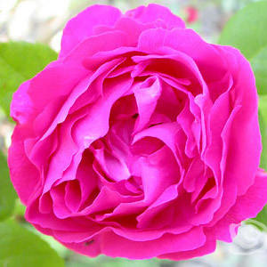 Boccioli enormi che producono fiori doppi, cremisi chiaro, sfumati di rosso, con i petali arruffati. Un fogliame ricco ed esuberante e un portamento eretto la accreditano per formare una bella siepe ordinata.