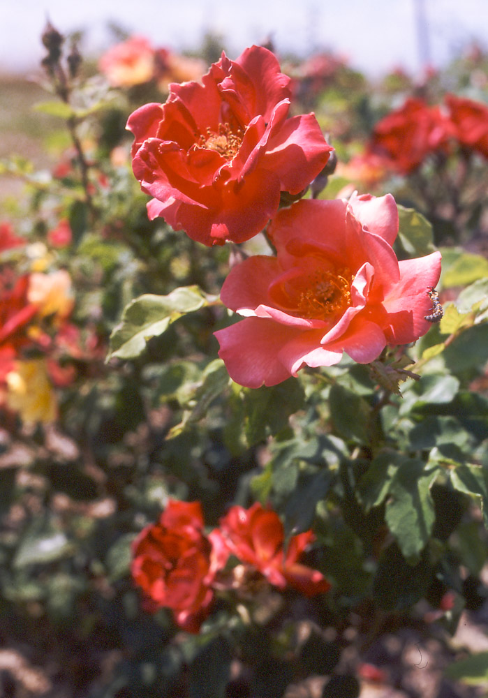 Giallo che vira verso il rosa, il colore dei fiori semidoppi portati da questa vigorosa rampicante, dotata di fusti robusti con fogliame verde scuro.
