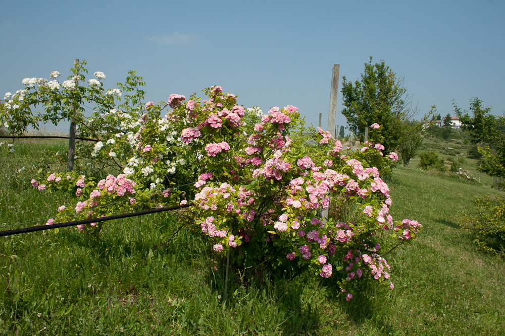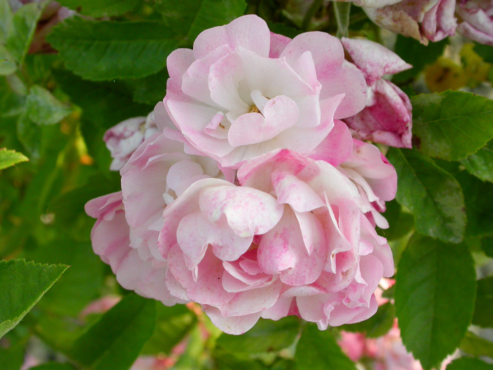 Una piccola rampicante che porta fiori piccoli, semidoppi, rosa, prodotti in grandi grappoli. Adatta a coprire piccole pareti esposte al sole.
