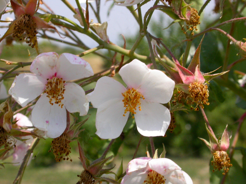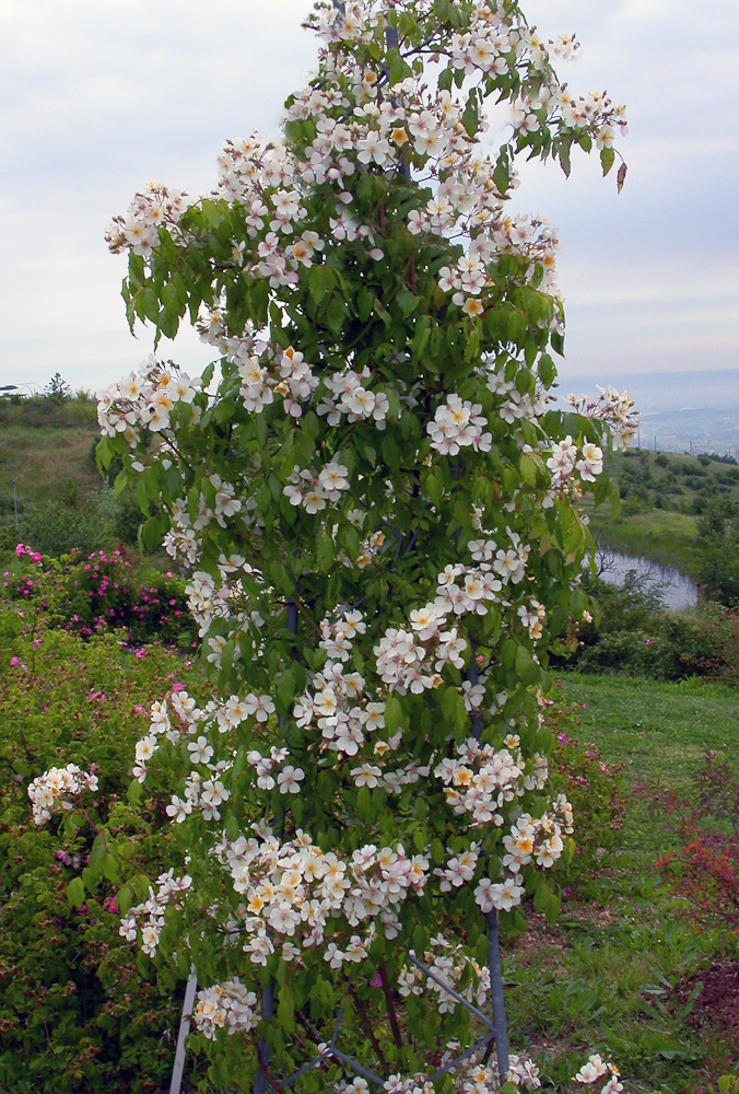 Una notevole rosa rampicante. Fogliame abbondante, grande, glauco porpora. Fiori in grossi grappoli, semplici con antere dorate, prominenti, seguiti da frutti arancioni, piccoli e rotondi. Possiede un forte profumo. Adatta a formare una grande rampicante e a raggiungere notevoli altezze sugli alberi.