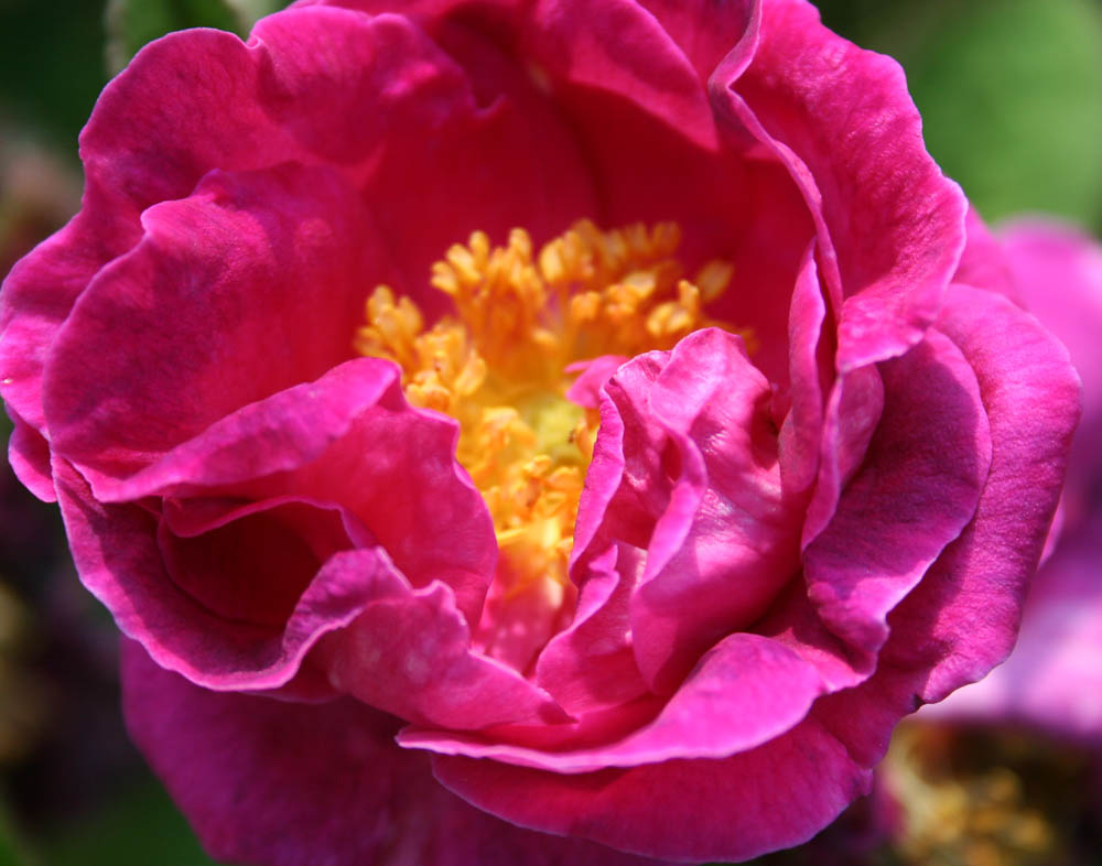 Fiori caratteristici, semidoppi, con i petali colorati di rosso ciliegia e lavanda, con belle antere dorate. Arbusto ordinato, eretto, adatta a formare una piccola siepe in terreni anche poveri.