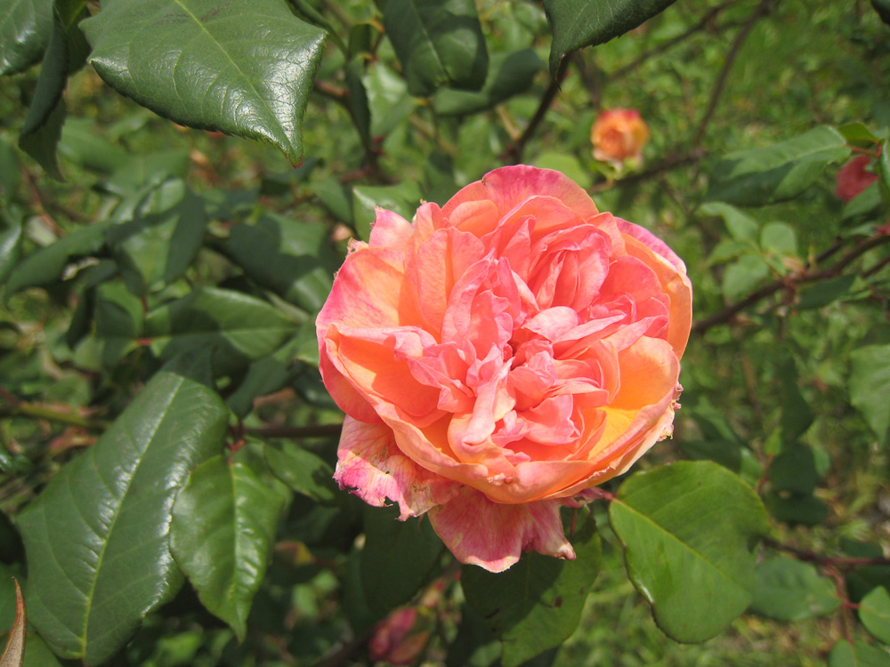 Una rosa Tea eccezionale, con fiori doppi, piatti e in quarti. Il colore e' una mescolanza di arancio, rosa e salmone su una base di giallo vivace. Sono prodotti con abbondanza e profumati. Ama i posti caldi e assolati. Adatta a essere coltivata nei vasi.