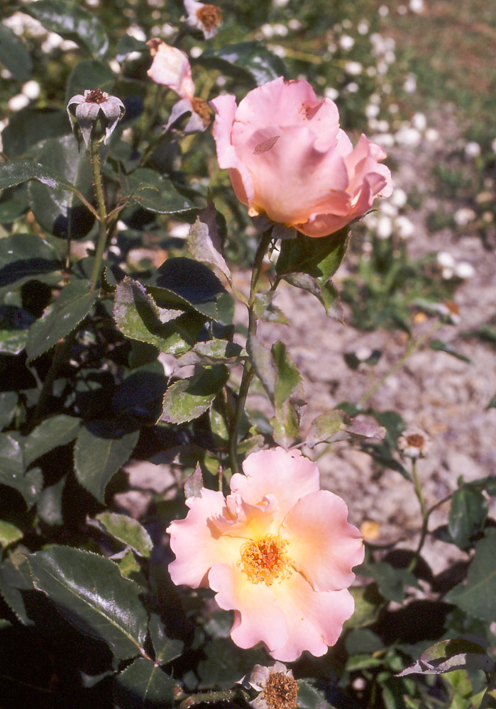 Vigorosa, eretta, forte con grandi foglie scure. Grandi mazzi di fiori semplici rosa, con stami pronunciati. Ottima nei vasi e per formare una siepe ordinata.