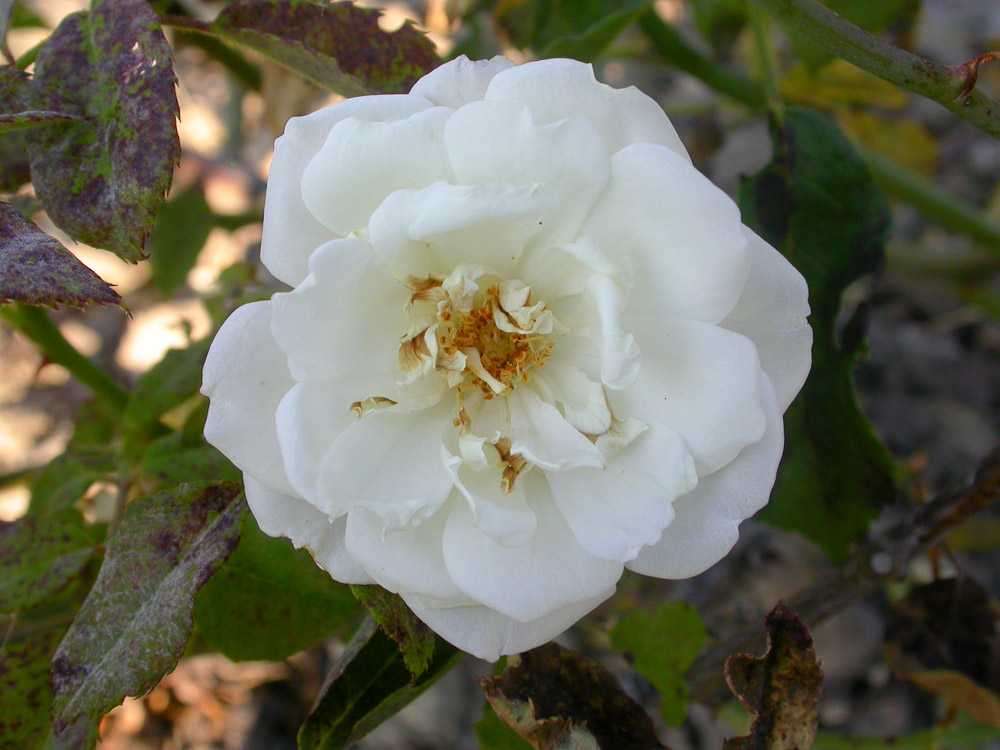Grappoli di fiori semidoppi, giallo brillante, verso il crema con l'eta. Pianta vigorosa e sana con un bel fogliame scuro. Sopporta i terreni poveri e le posizioni a mezza ombra. Buona per fare delle siepi fiorite.