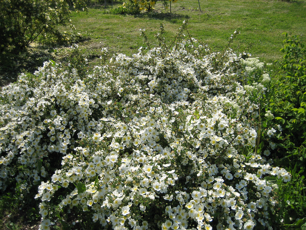 In fioritura e' spettacolare. Una massa infinita di fiori giallo crema che ricoprono totalmente la pianta. Ha un portamento basso, coprente e produce anche delle belle bacche che restono sulla pianta fino in autunno. Adatta ai vasi o a formare delle bellissime siepi in un giardino al pieno sole.