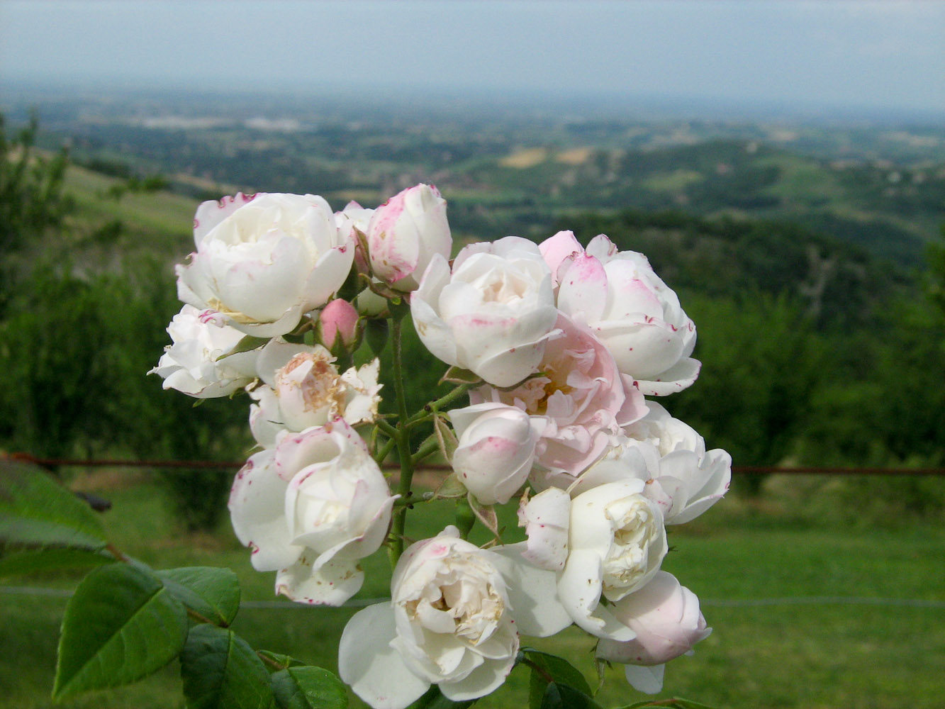 Rosa malva, doppi, portati in grandi grappoli ricadenti sono i fiori di questa rosa vigorosa. Il fogliame lucido e grandi spine la rendono perfetta a ricoprire un vecchio albero anche in postazioni a nord.