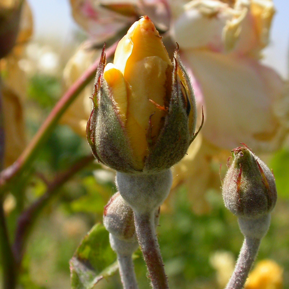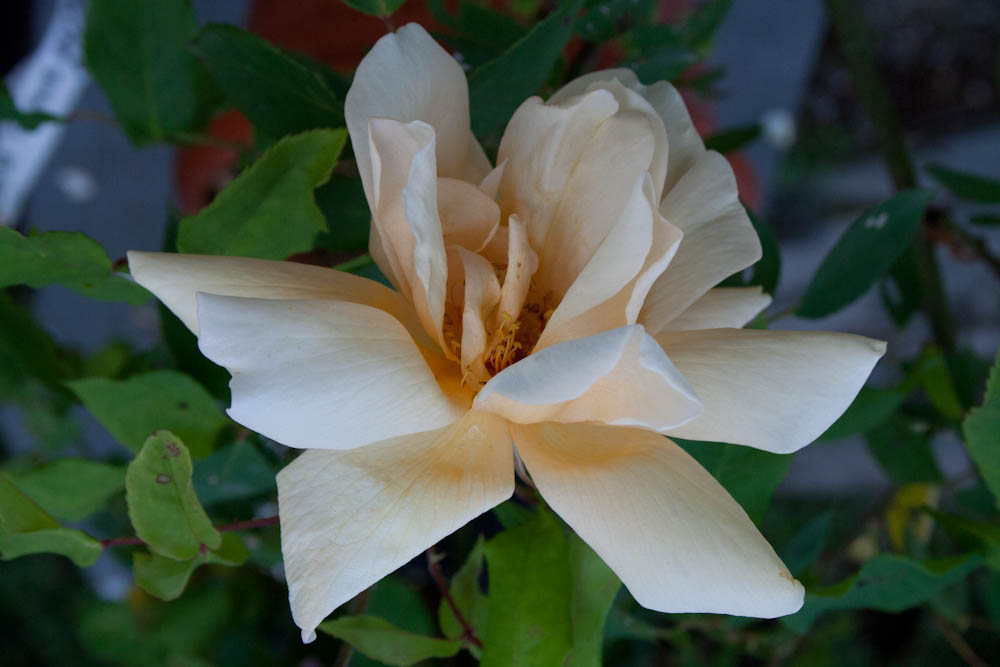 Fiori giallo albicocca su fusti scuri e forti vengono prodotti di continuo da quesra pianta adatta a essere coltivata nei vasi.