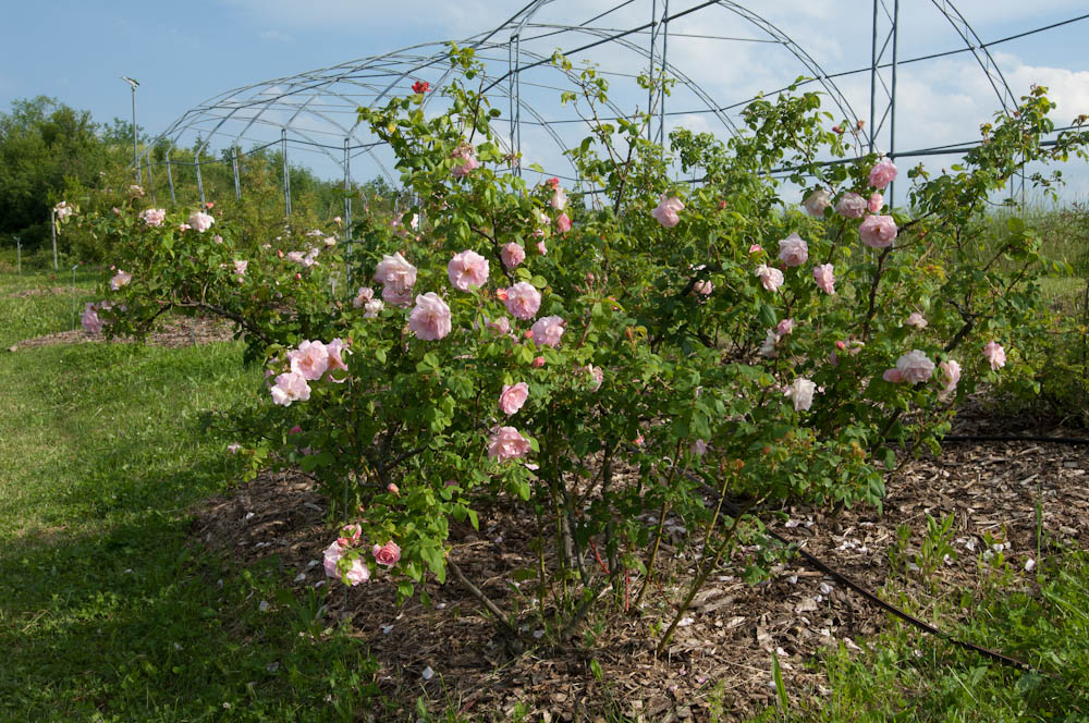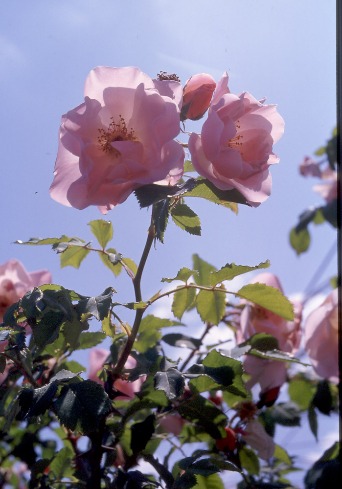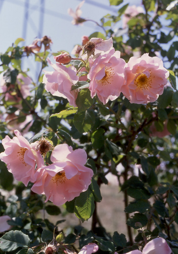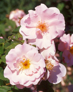 Densa, robusta, porta fiori rosa incarnato, completamente doppi, prodotti con grande abbondanza. Produce una quantita' impressione di frutti, piccoli e arancioni. Bella pianta per formare una siepe anche a mezza ombra in giardini naturali.