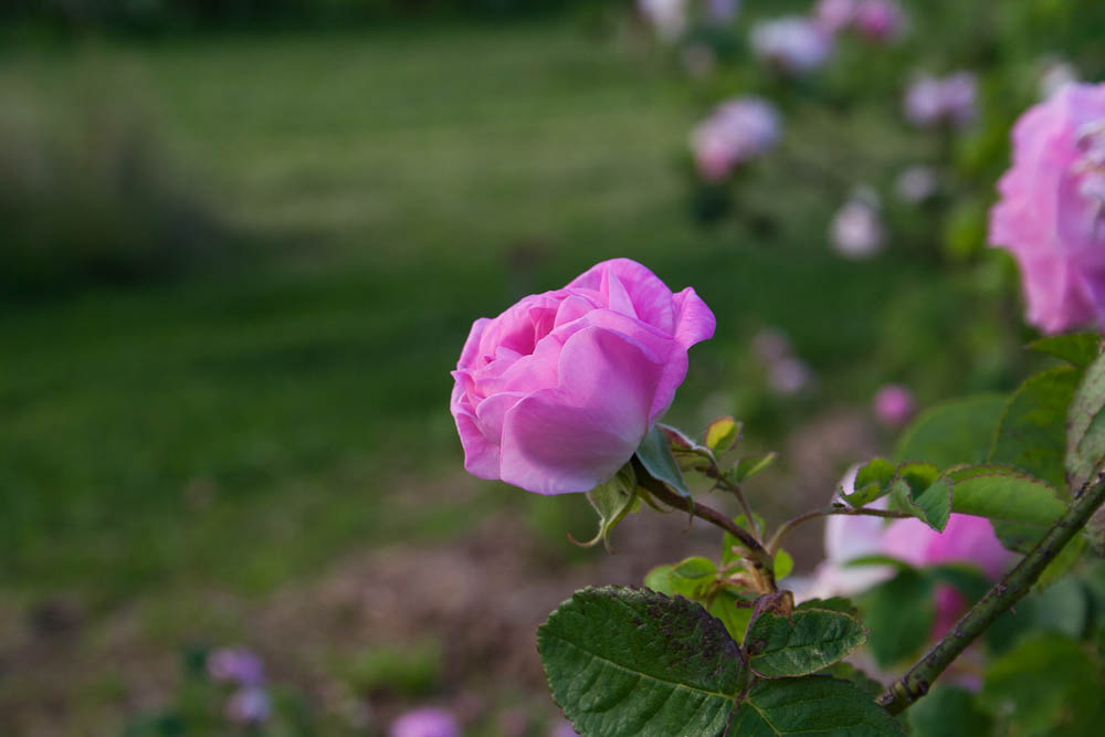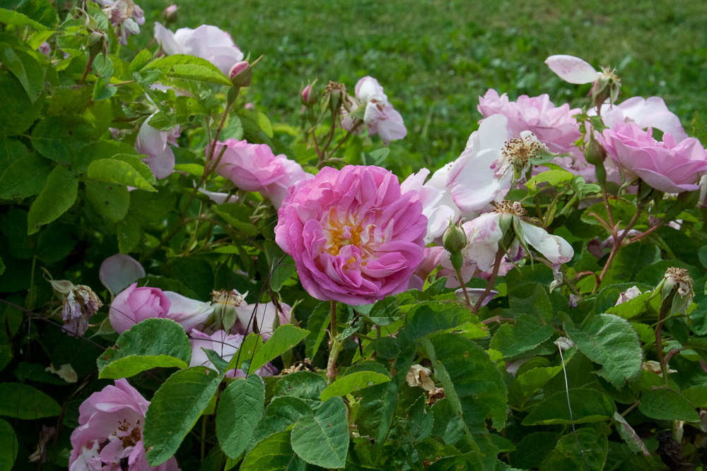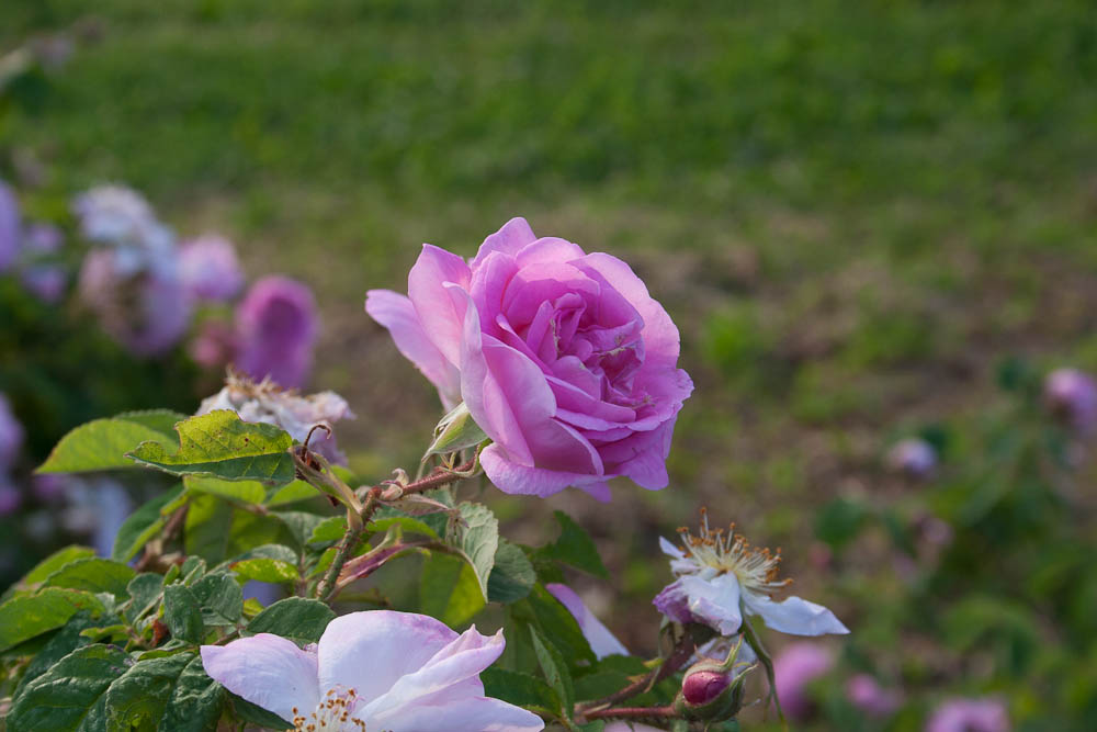 Stradoppi, piatti quando aperti, rosa brillante, con un profumo fortissimo, sono i fiori portati da questa pianta alta, con fusti ricoperti da piccole spine e bel fogliame verde chiaro. Entra a pieno titolo a formare una siepe di arbusti misti, dove i suoi alti rami vengono sostenuti dalle piante vicine. In grado di produrre fino a 700 fiori all'anno.