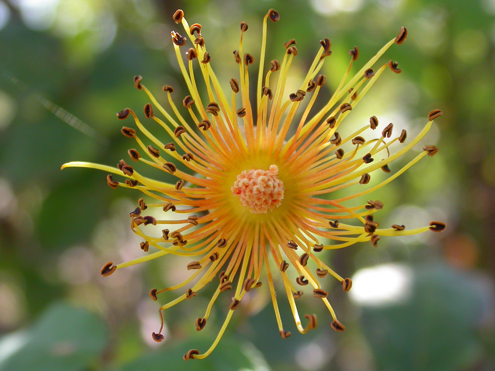 Giallo oro, grandi quasi semplici, con stami giallo brunato, prodotti con abbondanza sia isolati che a gruppi, molto profumati. Sempre in fiore questa pianta, che ha foglie verde chiaro e produce bacche aranciate in autunno. Buona per qualsiasi giardino.