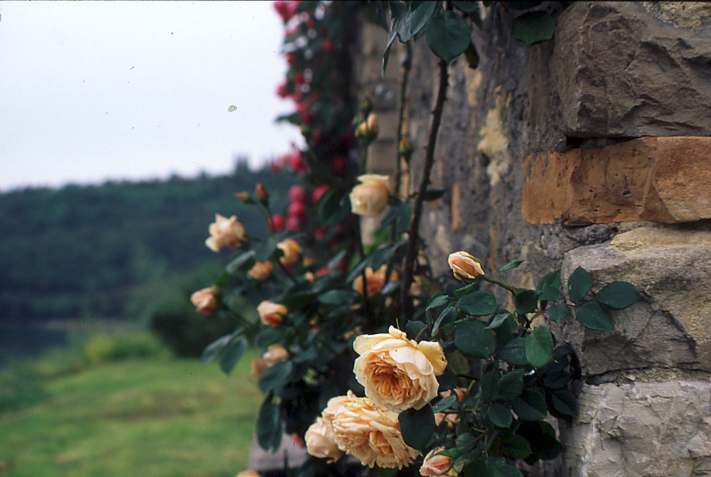 Amai posti caldi e miti, questa piccola rampicante che porta fiori doppi, giallo camoscio, con accenni di rosa. Molto profumata. Dotata di un fogliame verde scuro, lussureggiante.