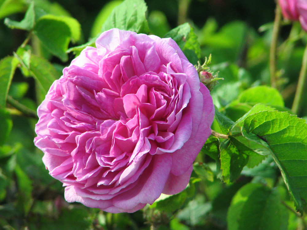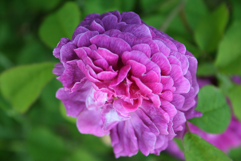 I fiori cambiano con il tempo e forse con il tipo di suolo dal rosa scuro al color malva, doppi e piatti dopo l'apertura. Pochissime spine, ha un portamento ordinato, con un bel fogliame. Adatta ai vasi e a formare aiuole.