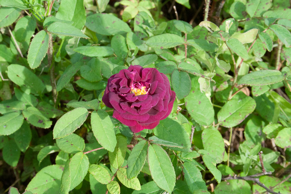 Fiori marrone, rossastro, vellutati, con stami dorati. Arbusto eretto e compatto, con piccole foglie. Una delle migliori rose muscose, adatta ai vasi e a formare gruppi nelle aiuole.