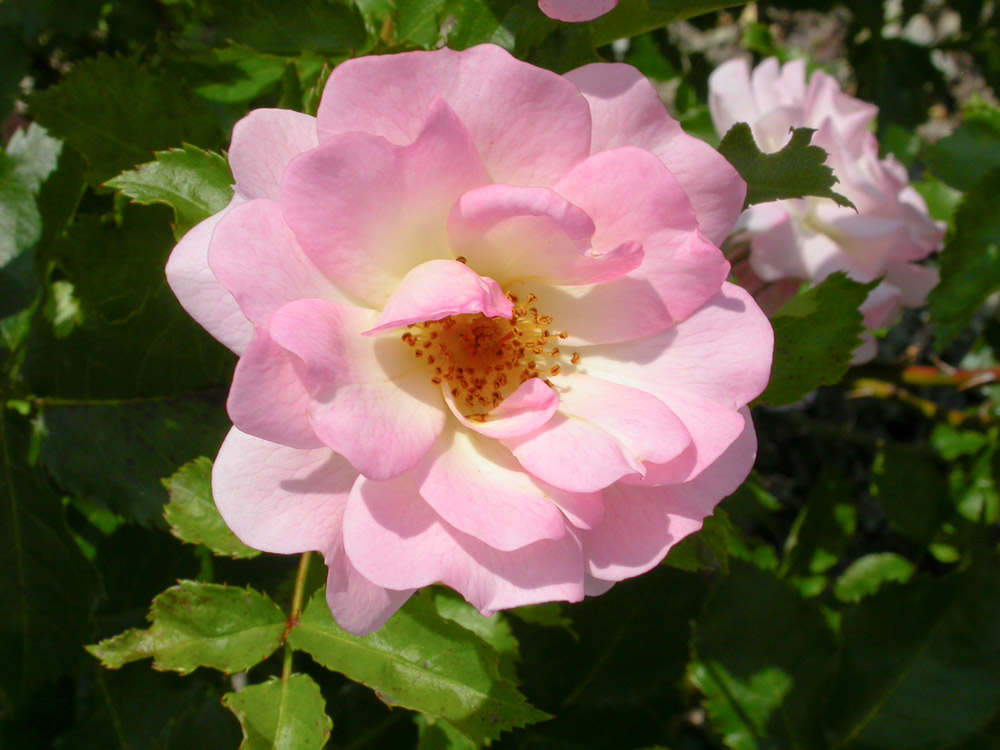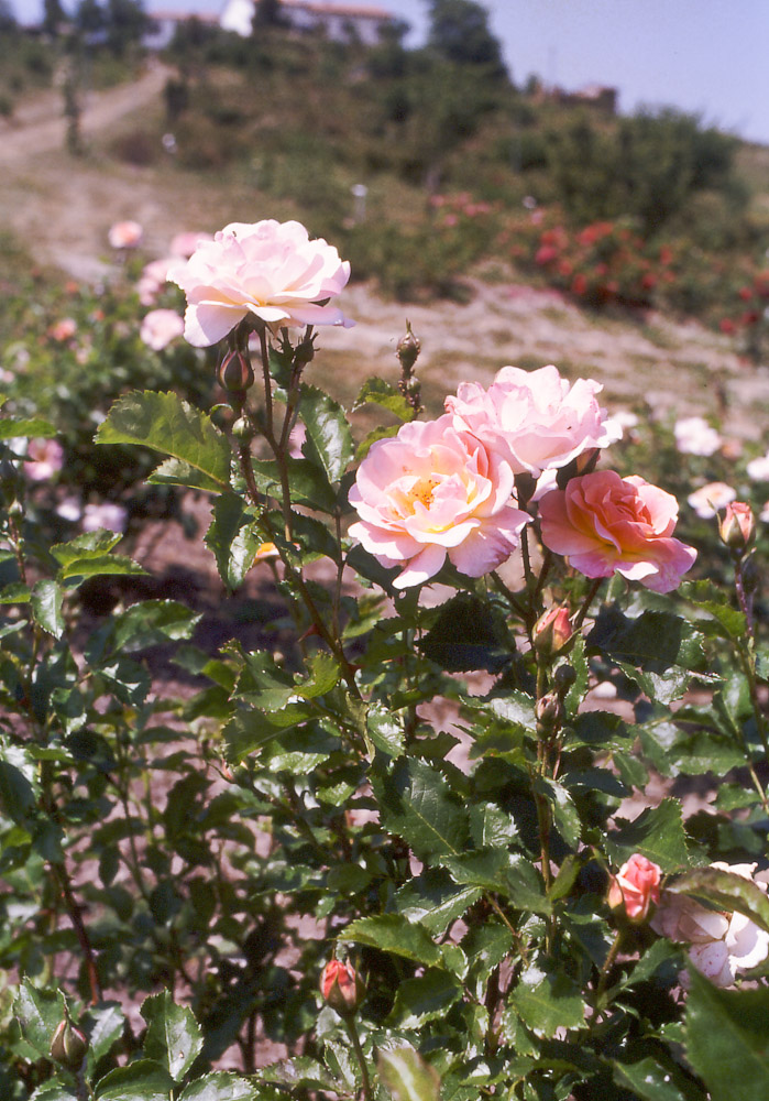 Una notevole pianta vigorosa e densa con un portamento allargato. Grandi fiori rosa argentato, profumati, prodotti a mazzi. Bella piantata a gruppi in un giardino alberato.