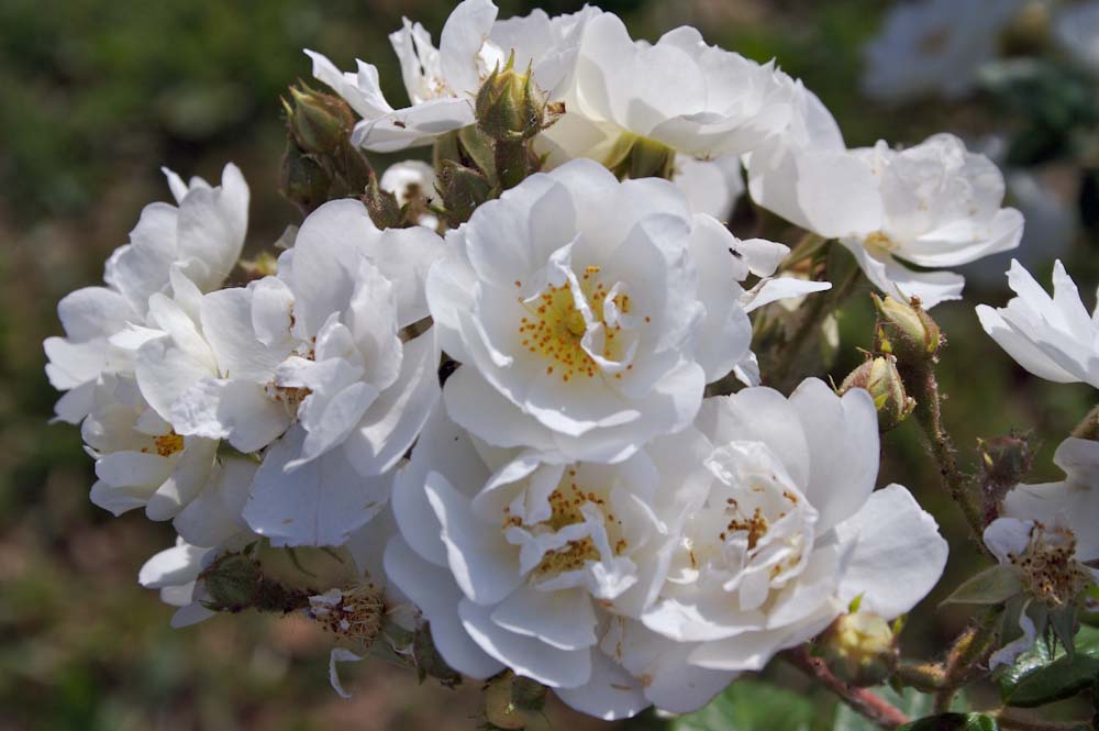 Rosa specie. Rampicante molto vigorosa con fusti sottili e poche spine. Produce fiori bianchi in grandi corimbi, seguiti da frutti rotondi, rosso scuro. Predilige il terreno secco e sabbioso. Ideale in giardini vicino al mare.