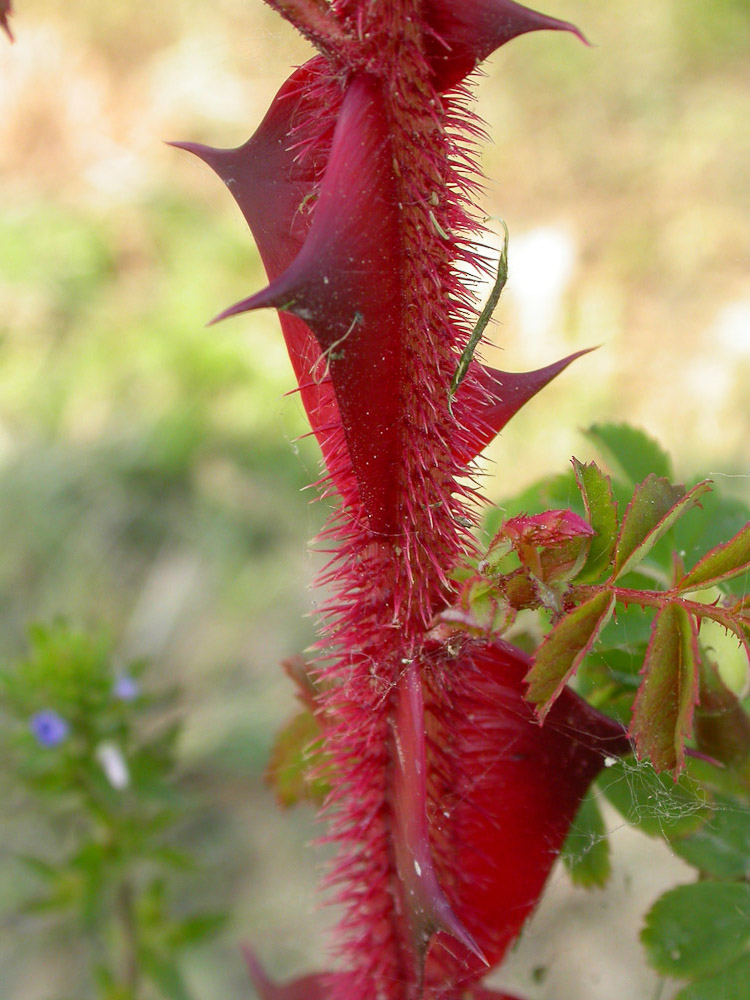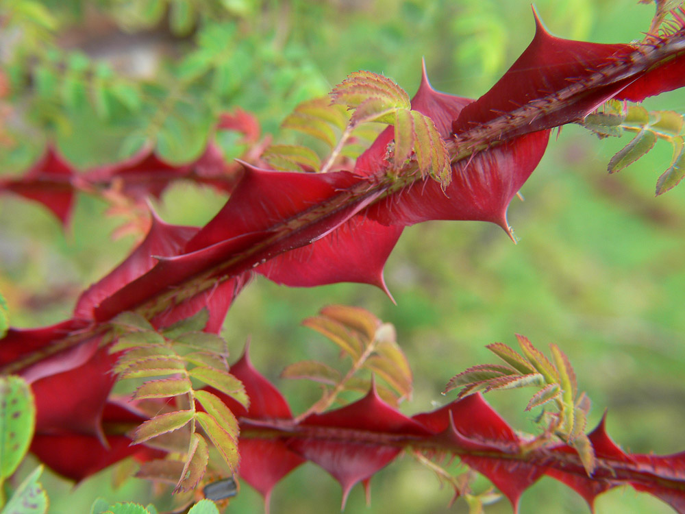 Rosa omeiensis 'Atrosanguinea', Rosa sericea L. f. pteracantha Franch.
