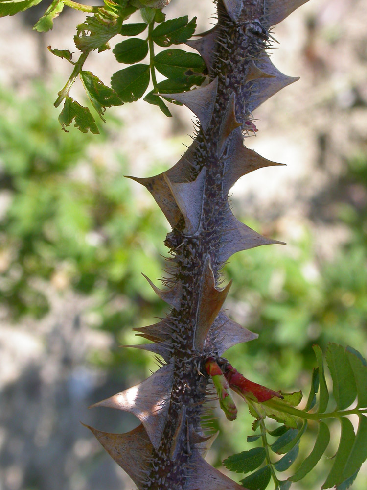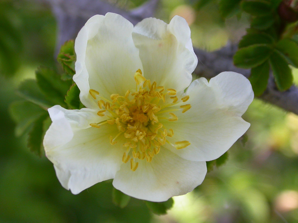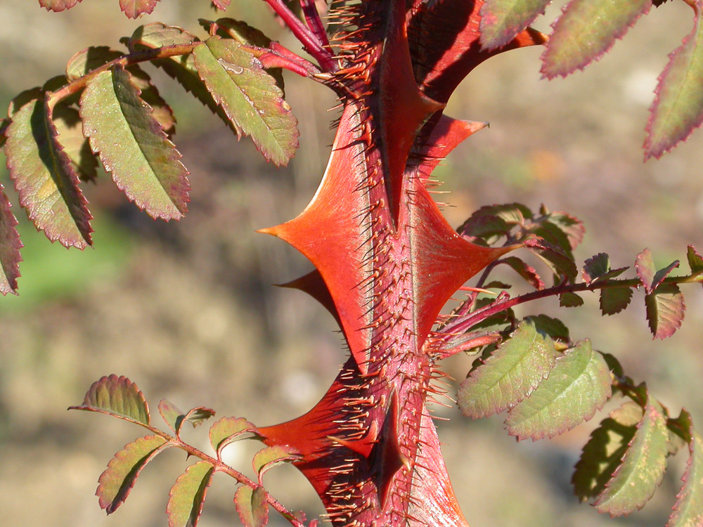 Pianta dal portamento grazioso. Fiori giallo crema, semplici, portati lungo i fusti dotati di spine rosse molto belle. Presenta un bel fogliame colorato in autunno. Da utilizzare a gruppi in un giardino alberato.
