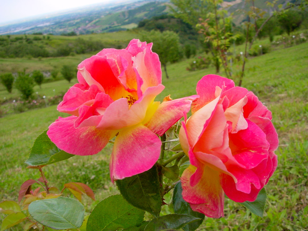 Una rosa che si fa notare per il colore dei fiori, arancio vivo, rosso e giallo, profumati. Fusti spinosi e molte foglie verde chiaro. Una buona rampicante per pareti a mezza ombra.