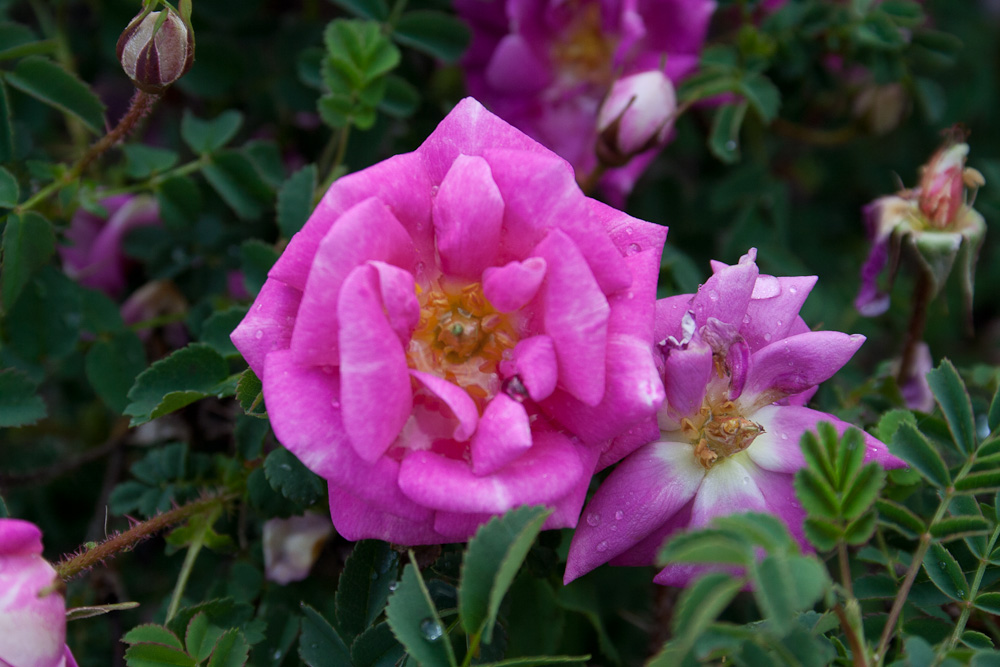 Frutti bruno cioccolato scuro prodotti da tantissimi fiori semidoppi, magenta marrone, con un buon profumo. La pianta e' ordinata, cespugliosa, validissima per coprire il terreno o per riempire un grande vaso.