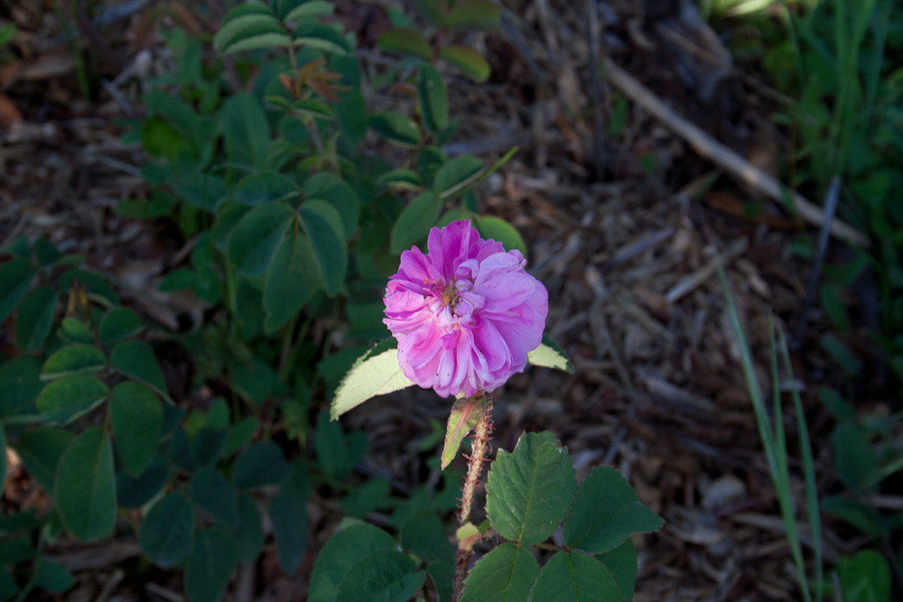 Rosa Muscosa dalla fioritura abbondante e con fiori rosa vivo, profumati di media grandezza, piatti quando sono aperti e costituiti da molti petali stretti e scanalati. Ben provvista di tomento brunastro.